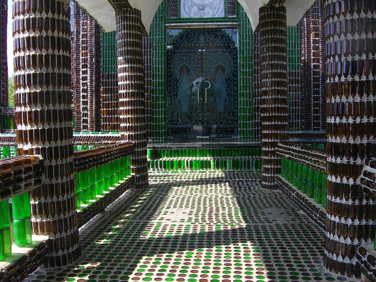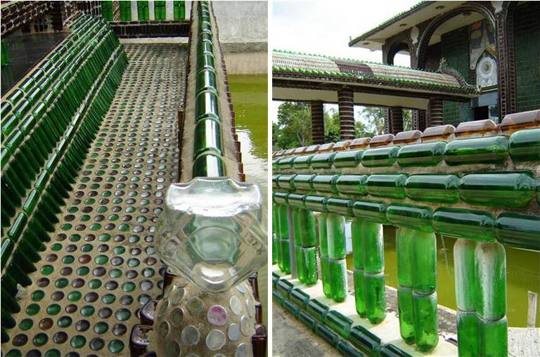 Inicialmente as garrafas eram utilizadas apenas para decorar as habitações dos monges, com o passar do tempo, foram sendo utilizadas para a construção de outros edifícios.