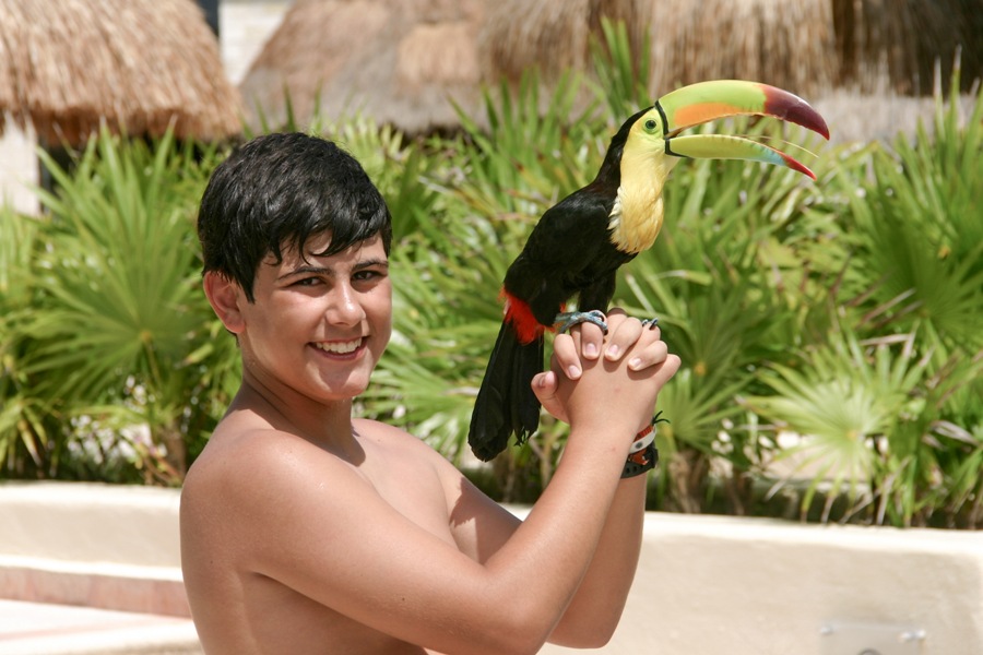 O "marketing de vendas" está sempre presente e pelo hotel circulavam fotógrafos com diferentes animais para os clientes tirarem fotografias. O Pedro como adora animais adorou poder estar com eles.