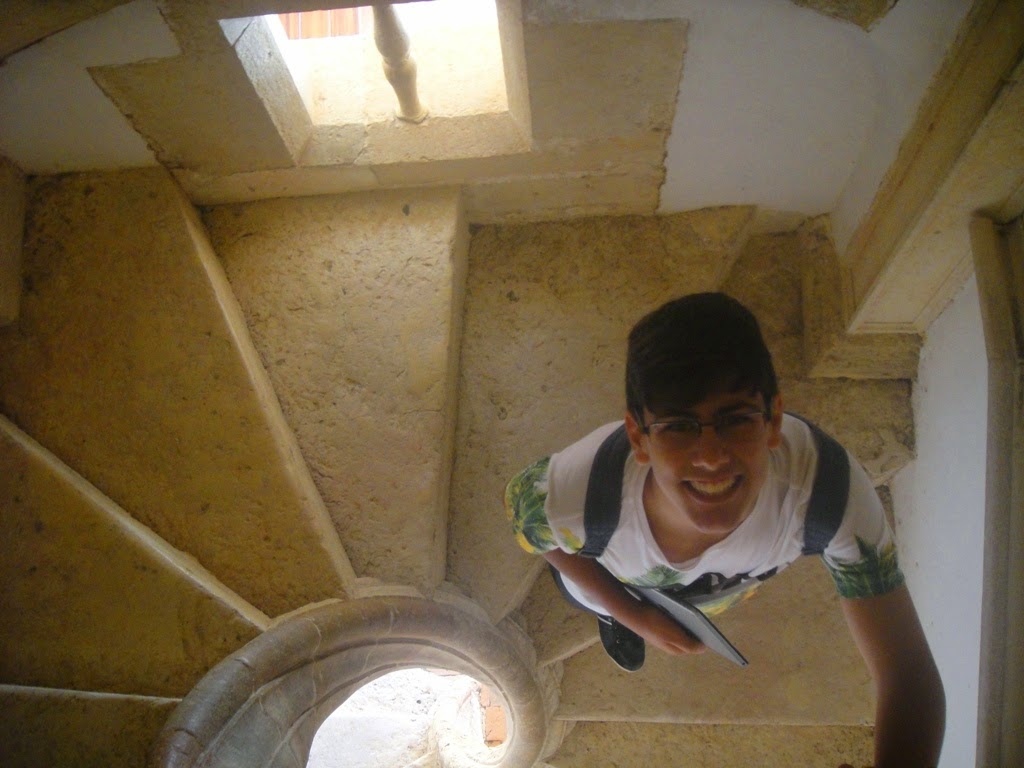 Subindo e descendo as escadas para ver a parte superior.